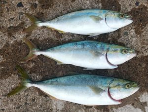 まずはサビキ釣りで鯵を釣り、釣りたてのその元気なエサで更なる大物を狙う